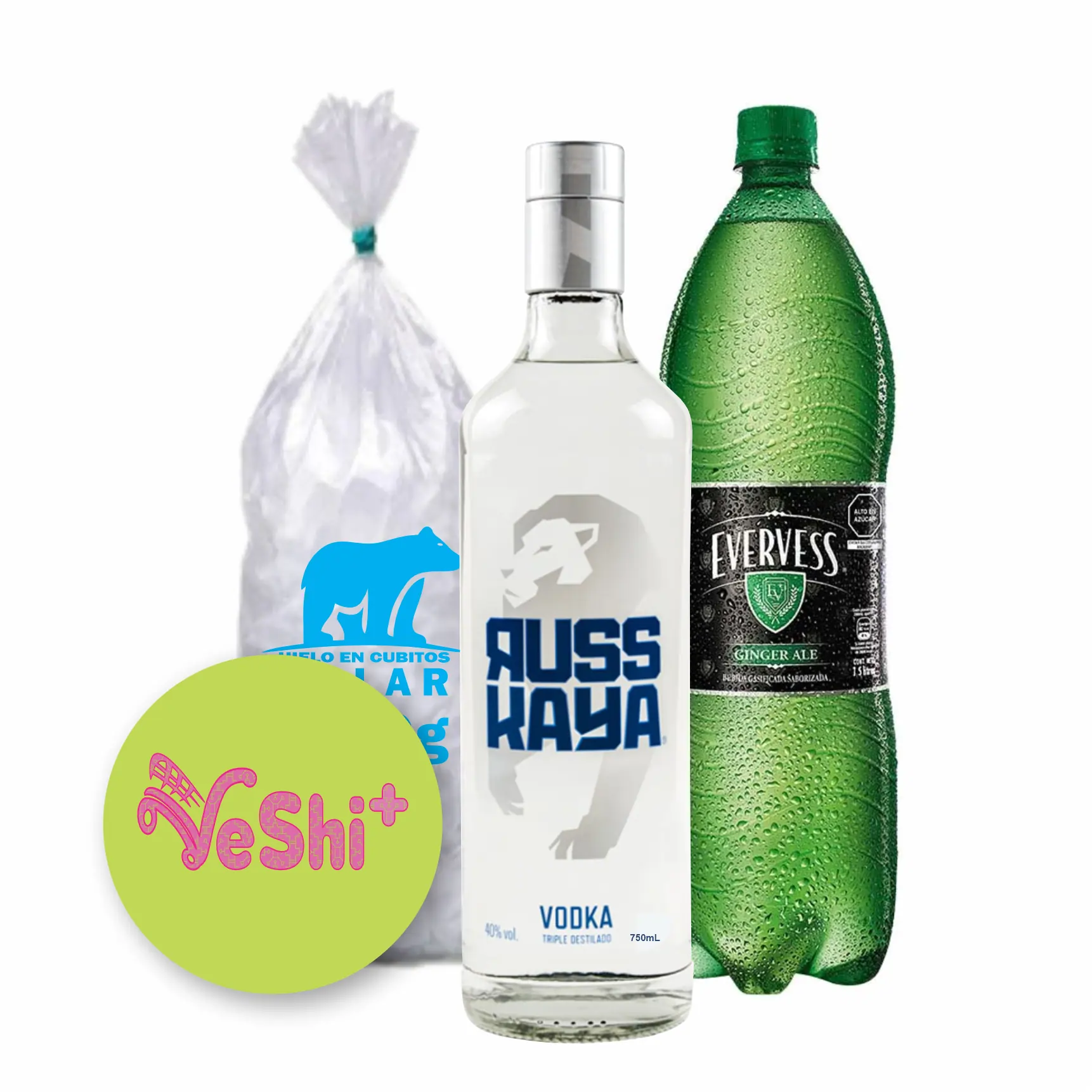 Combo Vodka RUSSKAYA NEUTRO 750mL + EVERVESS 1.5L + Hielo 900g