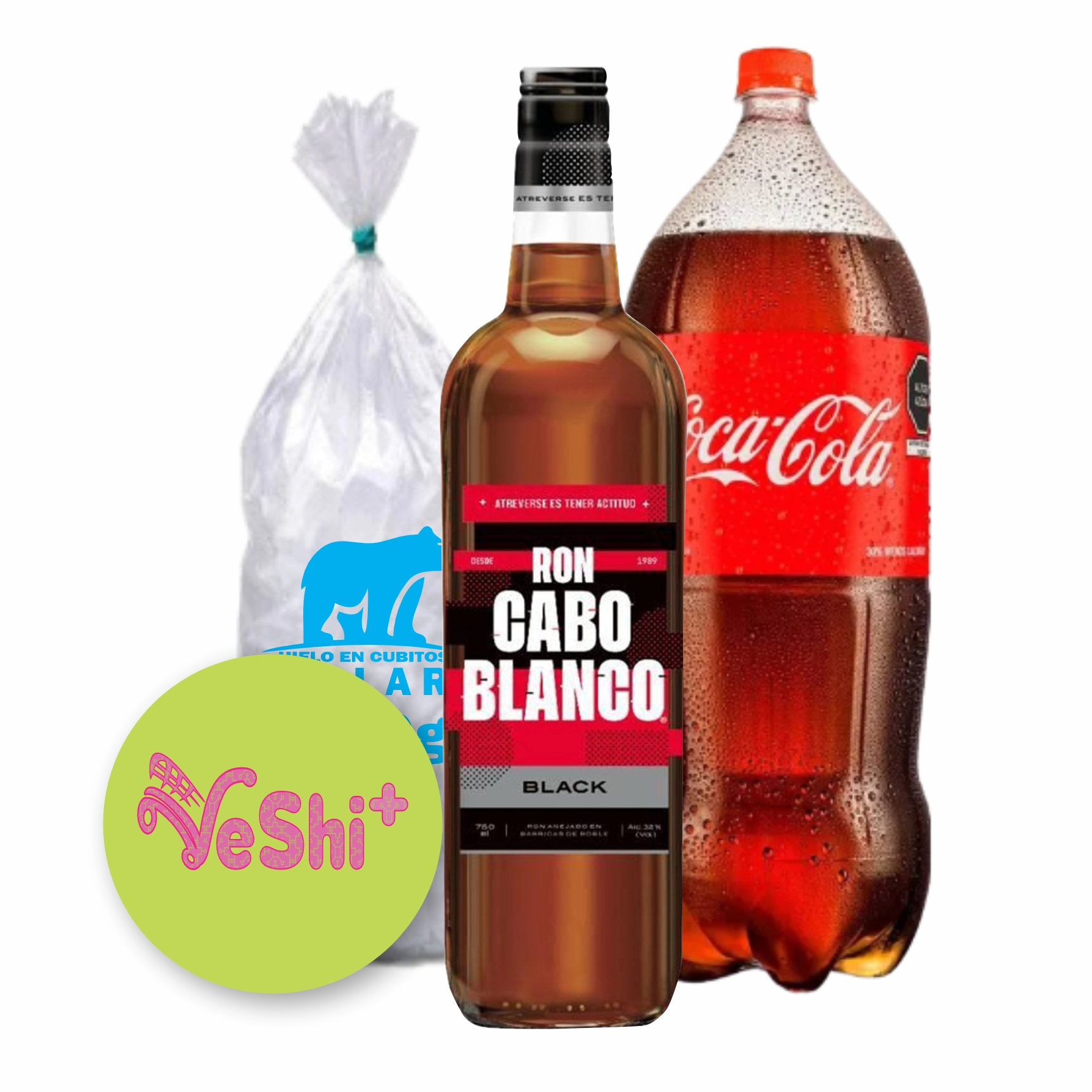 Combo Ron Cabo Blanco Black 750mL + Coca Cola 3L + Hielo 900g